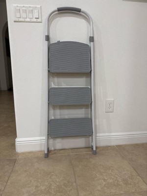 [This review was collected as part of a promotion.] This is perfect to reach items on high shelves and slender enough to store most anywhere. It’s heavy duty and durable. The only complaint I have is the bottom step feels narrow so if your arms are full climbing down it can make you feel unsteady. There was no assembly required.