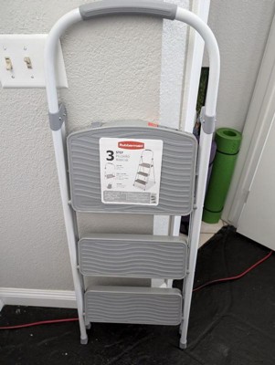 Step up with a stool that doesn't take up a lot of space around your home. With this Rubbermaid 3-Step Folding Ladder Steel Step Stool, you'll always have a lightweight and dependable step ladder on hand to reach up to that top shelf or cupboard.