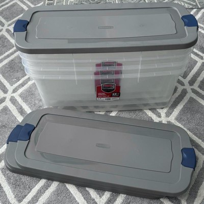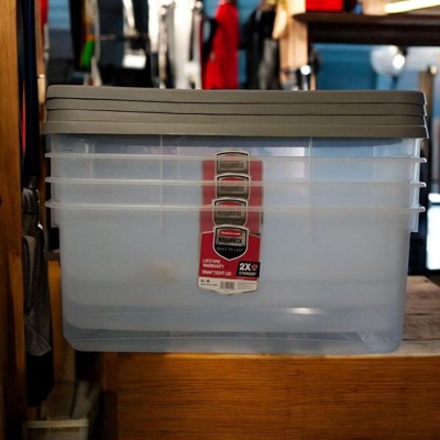 Rubbermaid 4 Pack Roughneck Clear Storage Containers, Stackable Totes, 95 Quart