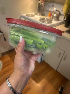 [This review was collected as part of a promotion.] This rubbermaid container holds more than it looks like. I am able to store an entire thing of celery, and it’s still fresh several weeks later. I am very pleased with how tight the seal is, and how large it is.