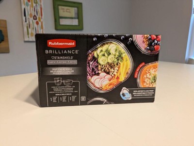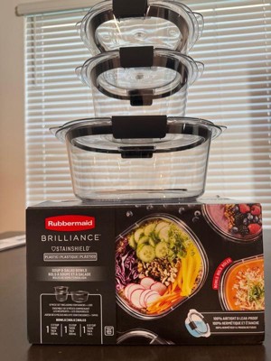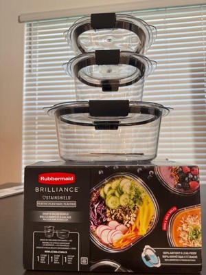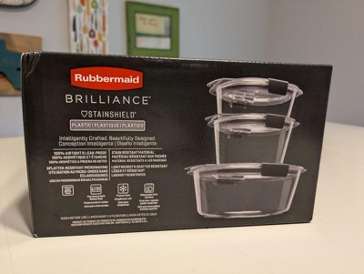 This 6-piece set of Rubbermaid Brilliance® round containers delivers 4x Protection: It is 100% leak-proof, stain resistant, shatter resistant, and odor resistant. This 4-way protection allows you to store leftovers, lunches, soups, and more with confidence. Made with premium StainShield™ plastic, and crystal clear 360° clarity, these containers resist stains and odors to stay looking like new. The unique dual-latch locking system forms a 100% airtight, leak-proof seal, and innovative vents allow for splatter-free microwaving with the lid on and latches open.