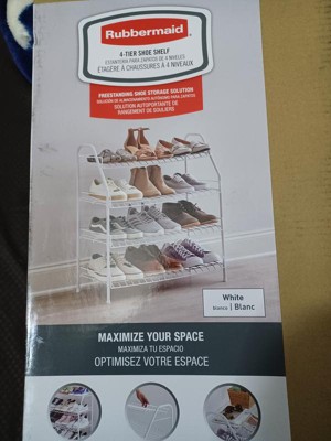 [This review was collected as part of a promotion.] The 4-tier, Rubbermaid Closet Shoe Shelf is a great height and idea. I like the ease of assembly but think it is very flimsy after being put together because it is so easy to assemble. Needs screws or something to hold each shelf.