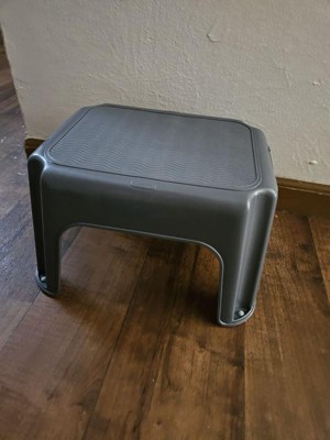 [This review was collected as part of a promotion.] This stepstool is designed for kids but works for shorter adults as well. It’s very conveniently sized and fits underneath furniture and tables for storage. The rubber bumpers on the feet and grooved top make it sturdier as well.