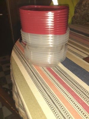[This review was collected as part of a promotion.] These come in two sizes for storing your food. There are 10 total. They aren’t as thick as some of my other Tupperware but they get the job done. I look forward to putting these to good use while shedding some pounds. “Abs are made in the kitchen.”