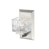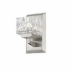 A subtle brushed nickel finish offers character to this transitional steel wall sconce. A glass shade offers a crystal look that revs up its character and adds an elegant touch. Bathroom/Powder Room/Bedroom/Hallway Shade Included: Yes Dimmable: Yes Material: Glass, Finish Color: Brushed Nickel, Width: 4.75", Height: 8.75", Length: 5.25", Depth: 5.25", Backplate Width: 8.75", Backplate Length: 4.75", Lamping Type: Halogen, Number Of Bulbs: 1, Wattage: 75 Watts, Dimmable: Yes, Moisture Rating: Damp Rated