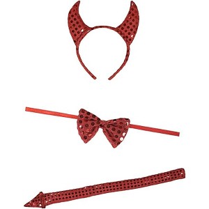 Rubie's Costume Co Sequin Devil Accessory Kit Costume Whether it's for Halloween or cosplay or any other fun dress up occasion, you will need this perfect devil costume accessory kit to become the sexy devil you have always wanted to let out. The kit includes Horns, Tail, and Bow Tie.