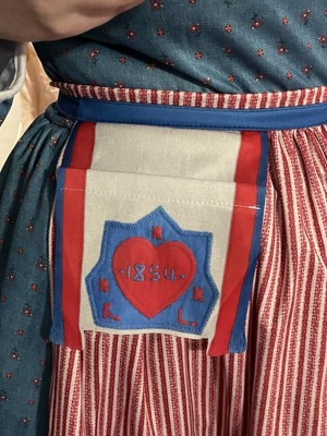 • This costume set includes: a costume dress, bloomers, bonnet, apron with spoon bag & handkerchief