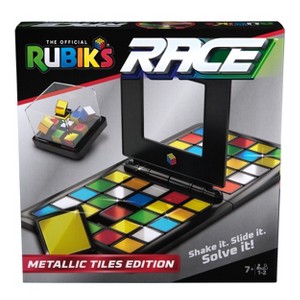Rubik’s Race is a fast-paced sequence board game that is designed to get your brain and fingers racing. Shake the scrambler and take your opponent on head-to-head. Shift and slide the tiles to become the first racer to complete the 3x3 center. Although it may sound easy, the Rubik’s Race board game is something of skill, speed, and dexterity. Challenge your friends and family to the Rubik’s Race and come battle for the pole position. Be the first to drop the divider frame on their completed side of the board. Can you handle the pressure of the Rubik’s Race? This new version of the Rubik’s Race game has mesmerizing metallic tiles, making the perfect gift for any Rubik’s enthusiast in your life. Get your hands on this brand-new strategy racing game like no other. If you are a fan of the original Rubik’s Cube, prepare yourself for hours of racing fun with an opponent of your choice. This is the ultimate two player face to face race. Take on your friends or family wherever you are. Who will be the first player to match the pattern of the nine metallic colored squares? Includes: 1 Game Grid (2 Game Trays and 1 Frame), 48 Colored Tiles, 1 Scrambler (Lid and Base), 9 Metallic Colored Mini Cubes, Instructions