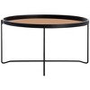 Brilliant color, rich materials and bold form define this contemporary round tray top coffee table. Ideal for any living room, slender black legs elevate the minimalist black wood frame surrounding its versatile rose gold glass tray top. Care Instructions: Dust regularly with a soft, dry cloth. Never use oiled or treated cloths on lacquered finishes. Some finishes can be wiped with a damp (not wet) cloth, followed at once by rubbing with a dry cloth to remove fingerprints and smudges. For persistent spots, gently clean with a soft cloth and a solution of water and mild soap, make sure to wipe dry. Use adhesive felt pads, coasters and placemats to protect your furniture.