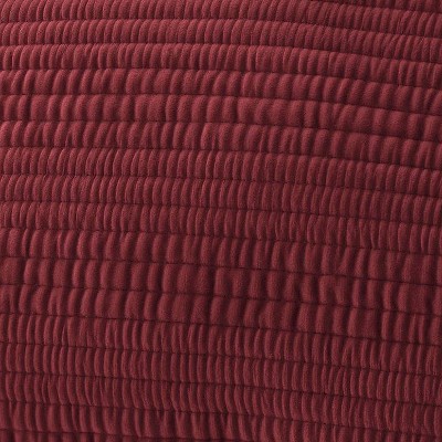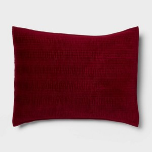 Finish off the top of your bed with the luxe style of this Ruched Velvet Quilt Sham from Threshold™. This rectangular quilted pillow sham showcases a solid-color velvet finish with a ruched construction and a plain reverse side. Made from 100% polyester with backing and fill, this machine-washable sham with a six-inch envelope closure adds comfort and functional style to your bedroom linen collection.