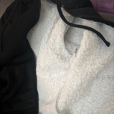 Stay warm and fashionable in this heavyweight fleece hoodie which features a faux shearling fleece lining. Materials are 60% cotton, 40% polyester.Featuring ribbed cuffs and waistband to keep the elements out.