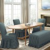 Add extra seating to your dining table with the Ruffle Slipcover Dining Bench from Threshold™ designed with Studio McGee. This armless dining bench is designed in a rectangle shape with attached cushions to help you dine and enjoy chitchats in comfort. Set on a wooden frame, this upholstered dining bench has a ruffled-trim slipcover, making it a beautiful addition to your space.