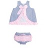 Your little girl will be picture perfect in this oh-so-adorable top and bloomer set. The design features a functional button in the back and ruffle bow on the rear of the bloomer.