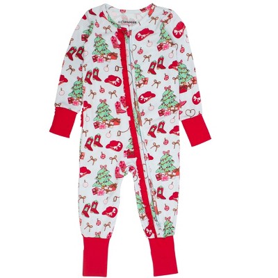 RuffleButts Gender Inclusive Modal Blend Baby One Piece Footie Pajamas - Red, 6-12m