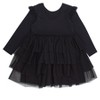 Black Flutter Tulle Long Sleeve Twirl Dress is the perfect choice for girls who adore elegance with a playful twist. This stunning black long sleeve dress features delightful flutter sleeves that add a whimsical touch, making it a standout girls tulle dress for any occasion. The ruffle detail enhances its charm, ensuring your little one feels like a princess every time she twirls. Designed to be both stylish and comfortable, this dress boasts a 4-way stretch fabric that moves with your child, offering freedom in every twirl and play. The fabric is also engineered to resist fading, maintaining its deep black color and quality even after multiple washes. Plus, it's partially lined for additional comfort and modesty. For a personalized touch, the dress can be monogrammed, making it an ideal girls monogram dress for special events or as a thoughtful gift. Pair this black flutter tulle dress with accessories in gold or red for a truly festive look. Whether it's a birthday party, a family gathering, or just a day out, this black dress for girls is sure to impress while keeping comfort and durability in mind.