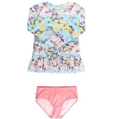 RuffleButts Girls UPF50+ Seersucker Color Block Flounce Bikini 2-Piece Swimsuit - Seersucker Color Block, 8