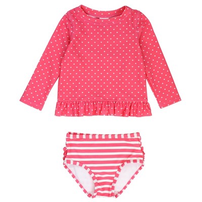 • RuffleButts Scallop Hem Long Sleeve Rash Guard Bikini Styles