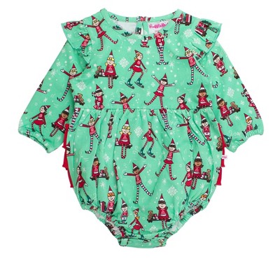 Classic Spring Bud Gingham Classic Ruffle Bubble Romper is the quintessential addition to your little girl's wardrobe this spring. Featuring a charming green gingham pattern, this girls' ruffle bubble romper combines timeless style with practical features. The lightweight woven fabric ensures comfort during playful days, while the signature rear ruffles add a delightful touch of whimsy. This romper boasts a button placket for easy dressing and undressing, complemented by snaps at the bottom to make diaper changes swift and hassle-free. The adorable bow detail enhances its classic charm, making it a perfect piece for family gatherings or picnics in the park. Ideal for the warmer seasons, this girls classic green romper is not only stylish but also functional. You can choose to personalize it with a monogram, making it a unique and cherished item in her closet. Dive into the spring bud gingham collection for a cohesively stylish season.