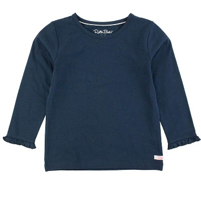 RuffleButts Toddler Girls Knit Long Sleeve Ruffle Peter Pan Tee