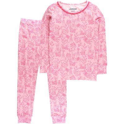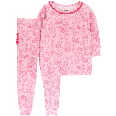RuffleButts Toddler Girls Short Sleeve Bow Ruffle Pajama Set - Pink Cottontail Toile, 2T