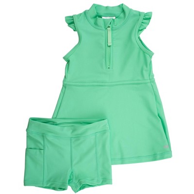 RuffleButts Toddler Girls UPF50+ Active Dress & Bike Short Set - Spring Bud Gingham, 2T