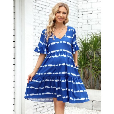 - Ruffled Short Sleeve Printed Maternity Babydoll Dress Navy blue,XXL