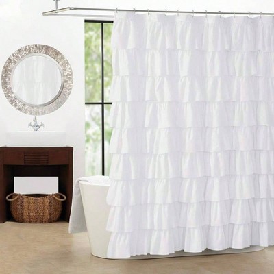 Ruffled Vintage Shower Curtain, 72x 72, White Farmhouse Style Bathroom Decor