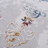A: This rug showcases an abstract design, blending contemporary colors with intricate patterns.