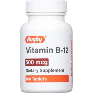 Rugby Vitamin B-12 500 mcg Tablets for Energy Metabolism, Nervous System Support, and Red Blood Cell Health, 100 Count