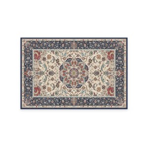 • A: The rug features a globally inspired floral design in traditional style with modern technology.