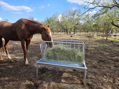 [This review was collected as part of a promotion.] We have a 2 horses and some other livestock on our property. We live in a township which is basically a suburb so we keep it small. This feeder is perfect for our needs. It holds a perfect amount of food for our animals. It was really easy to put together with like 4 bolts. It is made really well. It is very sturdy while they are eating and is high enough they don’t have to put their heads down to far to grab some food. Overall we’re very happy with this for our needs.