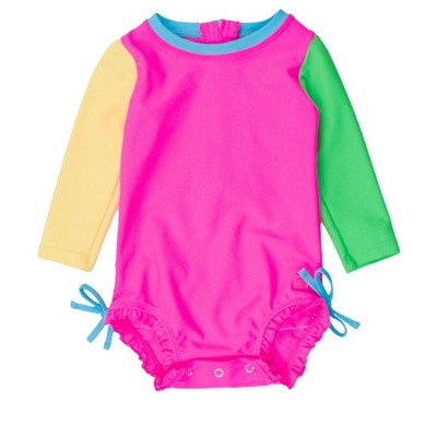 Ruggedbutts Baby Boys Long Sleeve One Piece Rash Guard - Neon Color Block, 6-12m