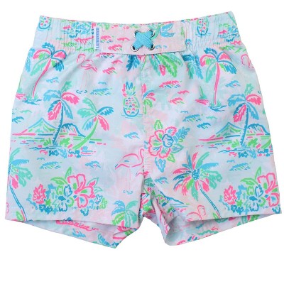 RuggedButts Baby Boys UPF50+ Sun Protected Stretch Swim Trunks - Blooming Basket, 3-6m