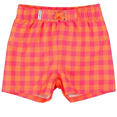 RuggedButts Baby UPF50+ Gingham Swim Trunks - Coral, 18-24m