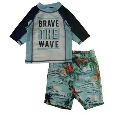 This RuggedButts Navy Short Sleeve RashGuard and Mint Colorblock Swim Trunk is perfect for your boy's summer style! Keep him protected from the sun with this UPF 50+ set and have him ready for all day fun in the sun at the beach or at the pool! Pair with your favorite sun hat for a more complete look.