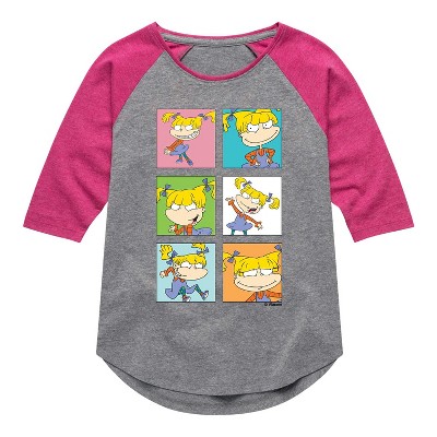 Rugrats - Angelica Grid - Youth Girl's Short Sleeve Graphic T-Shirt - Embark on a nostalgic adventure with the Rugrats graphic apparel collection! Showcasing beloved characters like Tommy, Chuckie, Angelica, Phil, Lil, and more, each design captures the playful spirit and imagination of the iconic animated series. Perfect for fans of all ages, these pieces bring childhood memories to life with fun, colorful style.