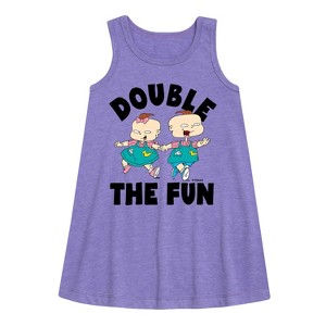 Rugrats - Double the Fun - Toddler and Youth Girls A-line Dress - Embark on a nostalgic adventure with the Rugrats graphic apparel collection! Showcasing beloved characters like Tommy, Chuckie, Angelica, Phil, Lil, and more, each design captures the playful spirit and imagination of the iconic animated series. Perfect for fans of all ages, these pieces bring childhood memories to life with fun, colorful style.