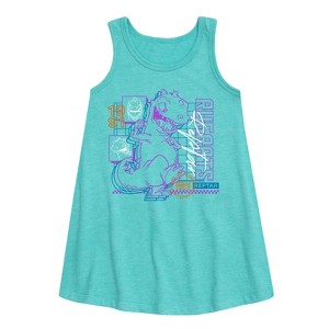 Rugrats - Reptar Grid - Toddler and Youth Girls A-line Dress - Embark on a nostalgic adventure with the Rugrats graphic apparel collection! Showcasing beloved characters like Tommy, Chuckie, Angelica, Phil, Lil, and more, each design captures the playful spirit and imagination of the iconic animated series. Perfect for fans of all ages, these pieces bring childhood memories to life with fun, colorful style.