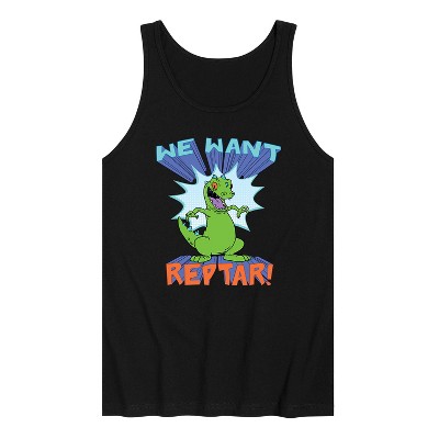 GRAPHIC TEE: The Nickelodeon dinosaur Reptar decorates this graphic tee. His name appears above him in green slimy letters. This shirt makes a great gift for original fans of the series who are now grown up.