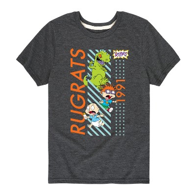 Rugrats - Reptar Repeat - Toddler And Youth Short Sleeve Graphic T-Shirt - Embark on a nostalgic adventure with the Rugrats graphic apparel collection! Showcasing beloved characters like Tommy, Chuckie, Angelica, Phil, Lil, and more, each design captures the playful spirit and imagination of the iconic animated series. Perfect for fans of all ages, these pieces bring childhood memories to life with fun, colorful style.