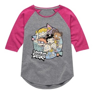 Rugrats - Retro - Toddler And Youth Girls Raglan Graphic T-Shirt - Embark on a nostalgic adventure with the Rugrats graphic apparel collection! Showcasing beloved characters like Tommy, Chuckie, Angelica, Phil, Lil, and more, each design captures the playful spirit and imagination of the iconic animated series. Perfect for fans of all ages, these pieces bring childhood memories to life with fun, colorful style.