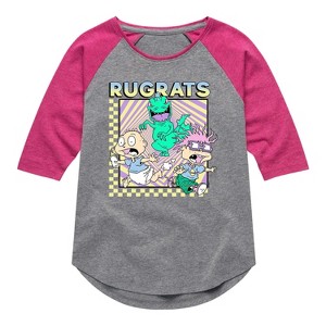 Rugrats - The Chase - Toddler And Youth Girls Raglan Graphic T-Shirt - Embark on a nostalgic adventure with the Rugrats graphic apparel collection! Showcasing beloved characters like Tommy, Chuckie, Angelica, Phil, Lil, and more, each design captures the playful spirit and imagination of the iconic animated series. Perfect for fans of all ages, these pieces bring childhood memories to life with fun, colorful style.