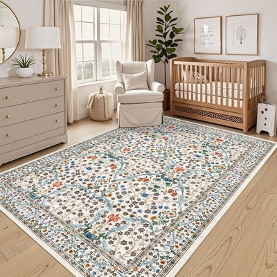 Rugs for Living Room Bedroom Washable Bordered Area Rug Non-Slip Modern Rugs Border Floor Carpet