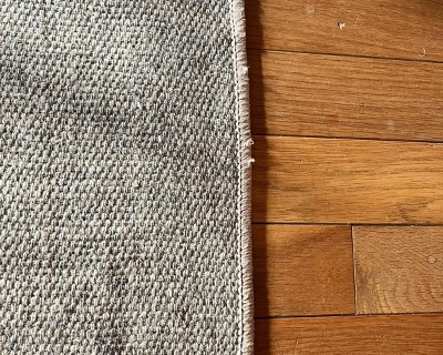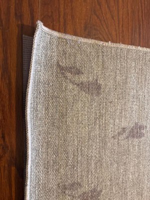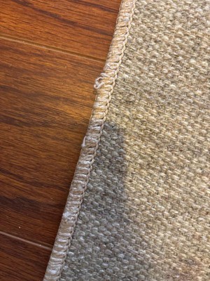 (This review was collected as part of a promotion.) The actual color of the carpet leans grey rather than beige, unlike the pictures shown online. There are also a couple of areas with weaving imperfections.