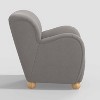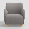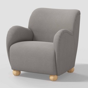 Switch up your home decor with this Rumi Armchair in Linen from Threshold™. This upholstered armchair chair features a modern appearance with a thick padded seat and backrest for comfortable sitting. Covered in solid-colored linen fabric, it blends seamlessly with the existing decor in your home, and the pinewood frame and round wooden legs offer sturdy support. Place it in your living room, bedroom or guest room to instantly elevate your decor.