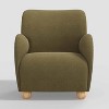 Switch up your home decor with this Rumi Armchair in Linen from Threshold™. This upholstered armchair chair features a modern appearance with a thick padded seat and backrest for comfortable sitting. Covered in solid-colored linen fabric, it blends seamlessly with the existing decor in your home, and the pinewood frame and round wooden legs offer sturdy support. Place it in your living room, bedroom or guest room to instantly elevate your decor.