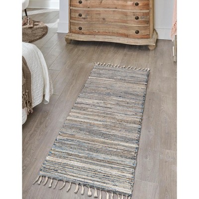 A: The runner rug is made from 100% polyester, ensuring durability and stain resistance.