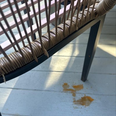 We have this out on our outdoor patio and within a month the legs started leaking liquid rust. It still does that. The cushions are not water resistant either