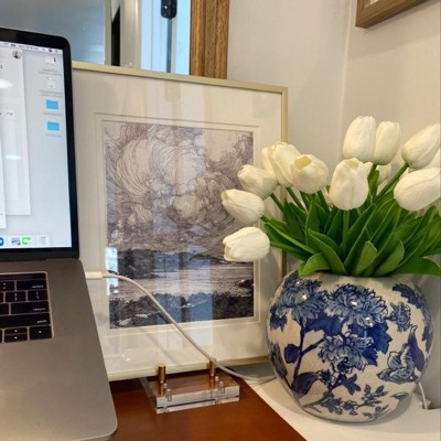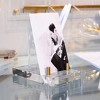 Add an extra element to displaying your most needed items. Both aesthetically inspiring and functional, our adjustable acrylic display easel with gold toned hardware brings sleek sophistication to your office and home. Features 3 spacing options to help accommodate varying widths. Use to display important notes, photography or think beyond your desktop and use in the kitchen to hold open your cookbook.