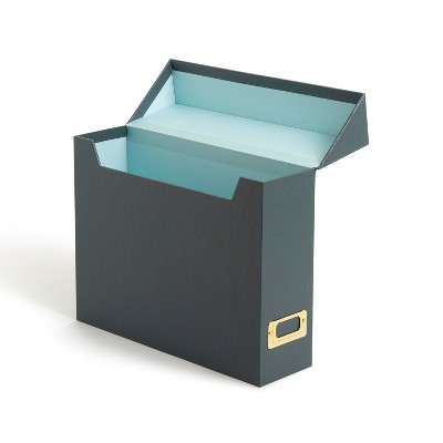 A very aesthetically pleasing filing box. If I could change one thing about this product it would be accessing the files.I keep this on a shelf at my desk and pulling out the box is a hassle. I wish it had a sliding mechanism attached to the bottom.